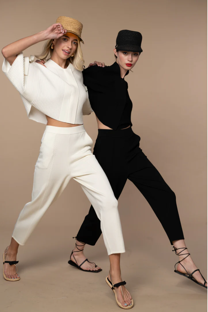 Elevate your wardrobe with our new and stylish wide legged trousers in Black and White. The perfect blend of comfort and sophistication, these trousers can be paired with our Jackie Kimono Jacket or worn on their own. Make a bold statement with these chic and unique trousers that exude an air of exclusivity. Versatile and fashionable, these trousers are a must-have for any season.